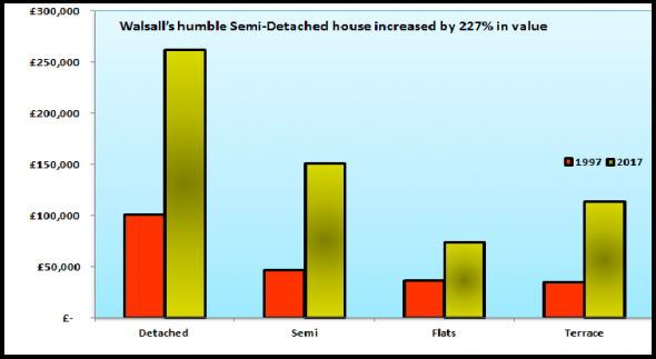 In 1997 the average value of a Walsall semi stood at £46,300, today it stands at £151,500